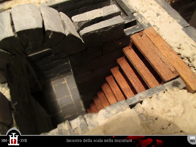 Para la construcción de los arcos decido usar ladrillos en vez que piedra, también en este caso más por gusto que por razones prácticas. Mi intención es la de interrumpir la gris monotonía de la fachada con elementos de color diferente.
