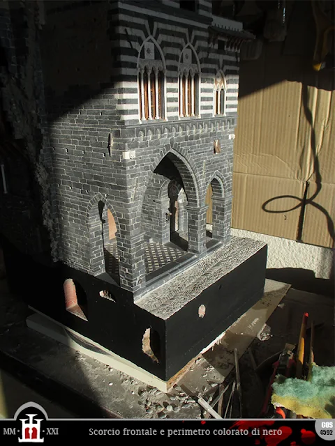 Mentre sul lato frontale e al di sotto del vicolo laterale, la "sezione" del